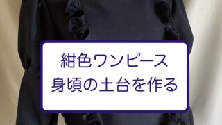 ただいま紺色のワンピースを製作しております。今回身頃部分の土台が完成しましたのご紹介しております。