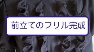 現在紺色のワンピースの前立て部分を製作しております。縦フリルを4本入れると華やかになりました。