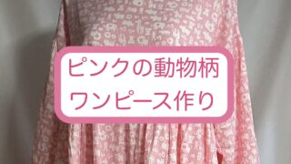 ピンク色の動物柄の生地でワンピースを製作しました。本年もよろしくお願いいたします。