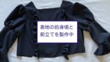 袖口の部分も縫い終わって、裏地と表地がくっついてくれたのでよりトルソーに着せやすくなりました。こうやって生地がどんどん一つのお洋服になっていくのが嬉しいです。