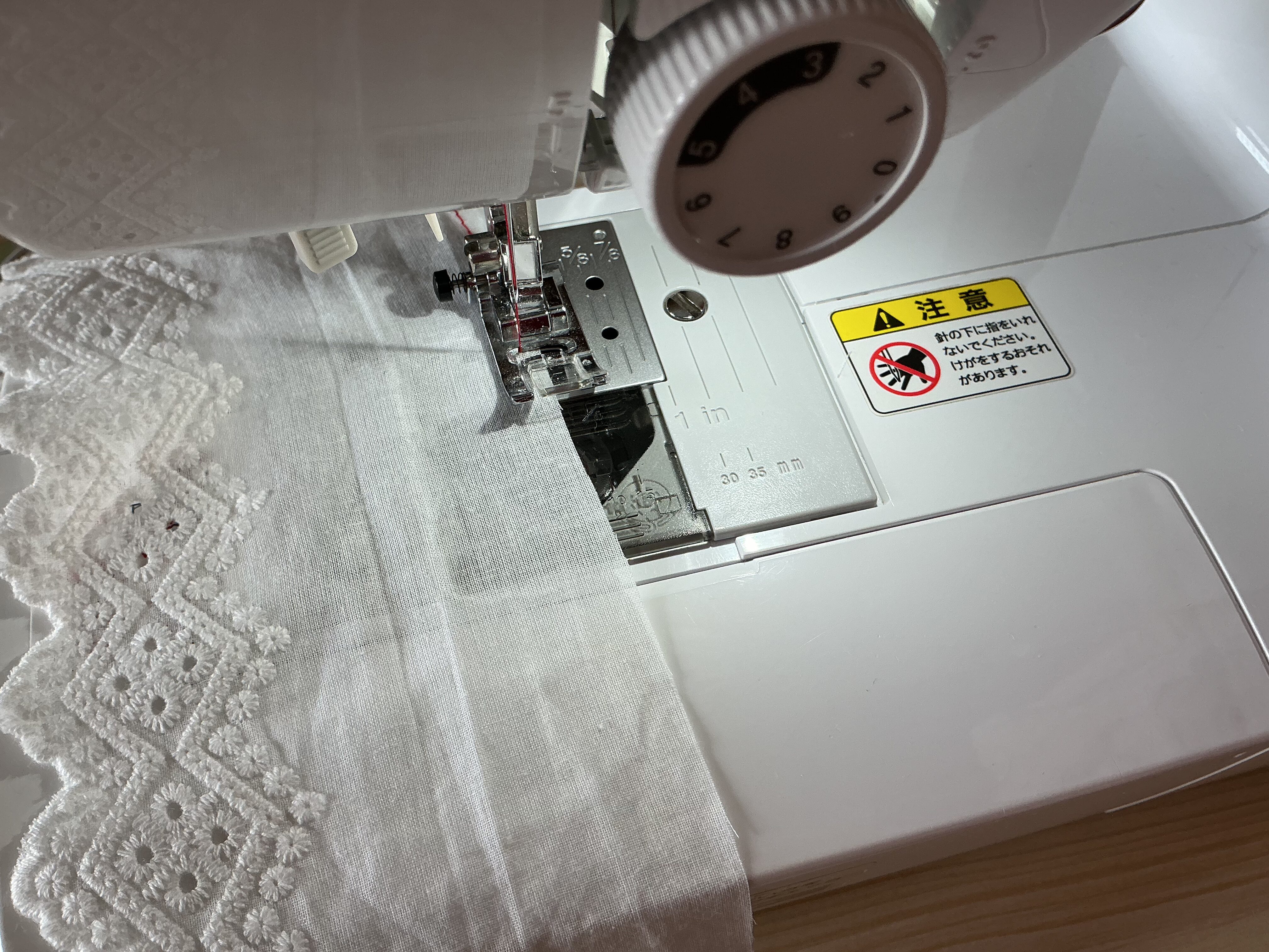 ギャザー寄せのために、綿レースにミシンかけをしております。3mほどあったので、なかなか縫い終わりません・・けどゆっくりでも丁寧に縫って、綺麗に完成させたいので、頑張ります!
