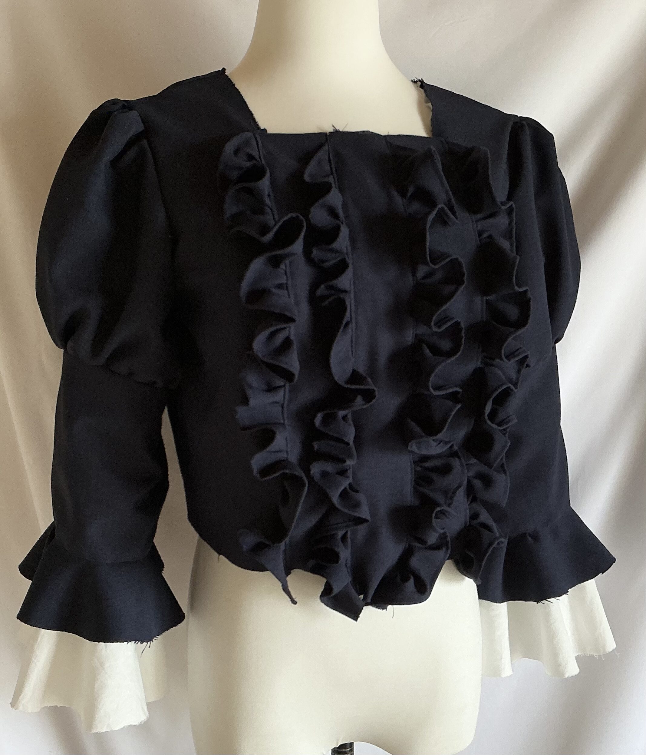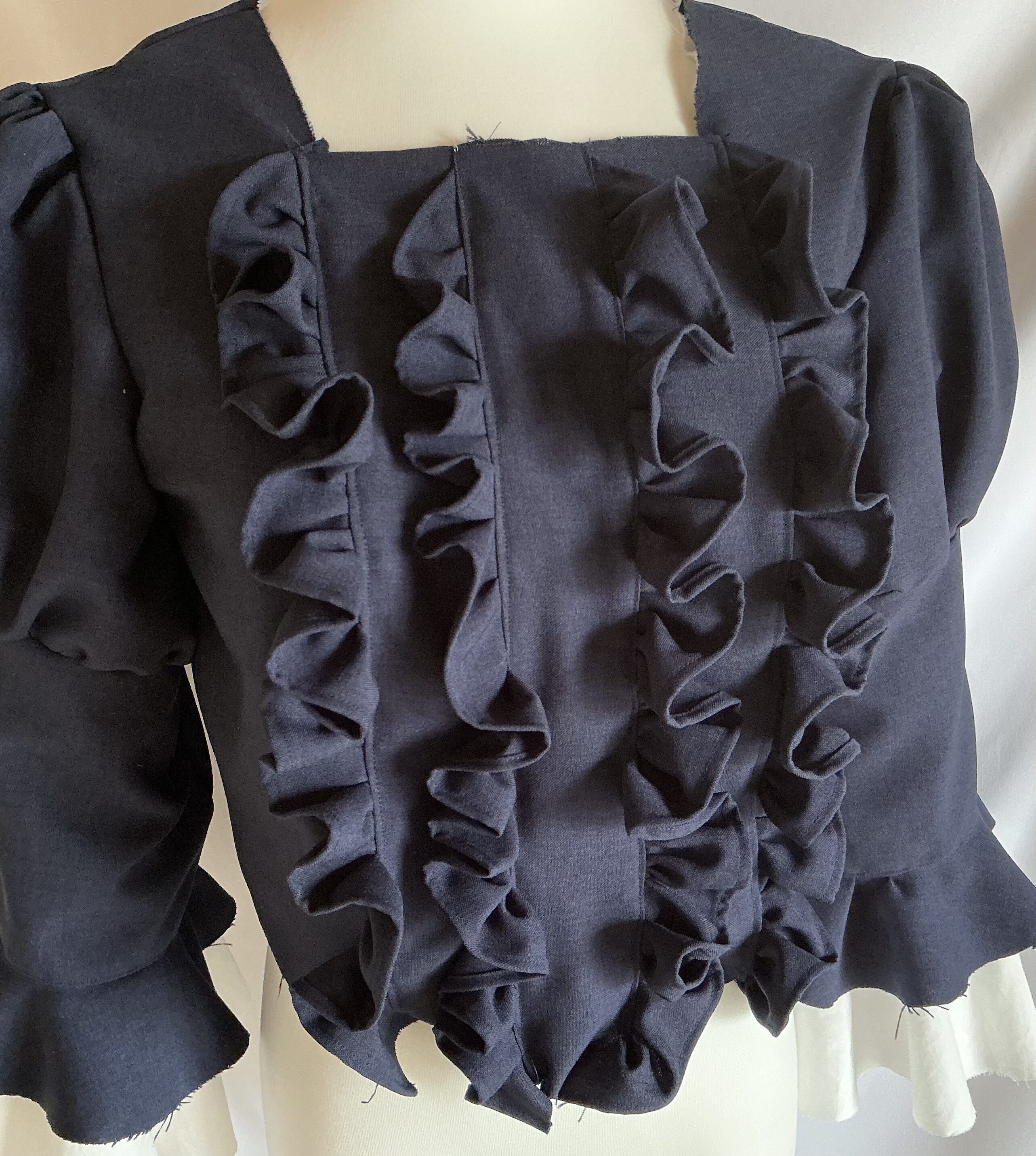 いよいよ前立てのフリルがつきましたので、このようにトルソーに着せてみました。