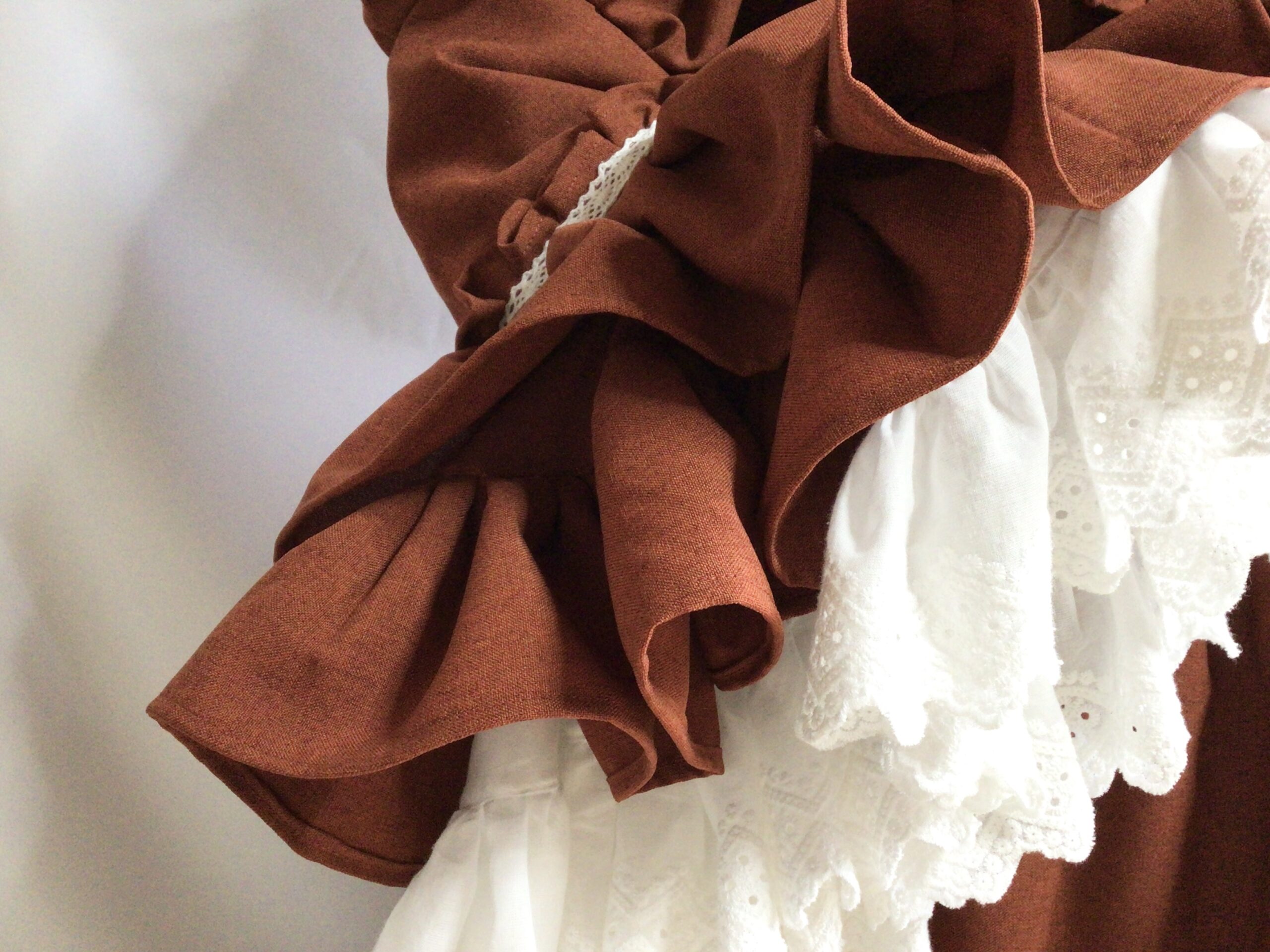 綿レースのフリルって柔らかくて大好きです。赤いドレスの時のとうに、白い綿レースと同じものを使っています!