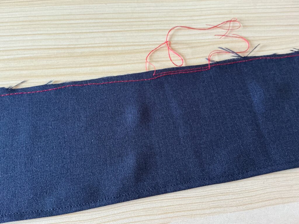 このようにギャザーを寄せる前のフリル布を用意!どんどんギャザーを寄せていきます。